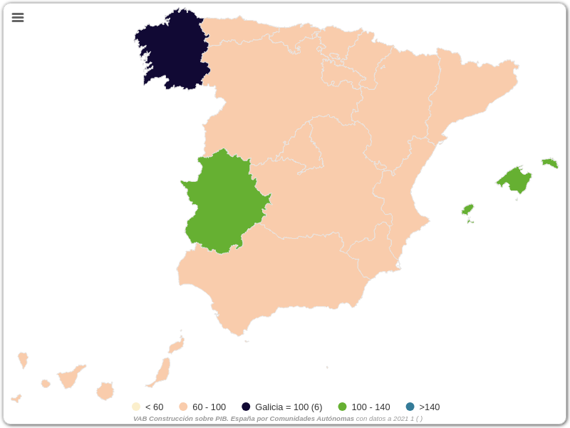 VAB Construcción sobre PIB. España por Comunidades Autónomas