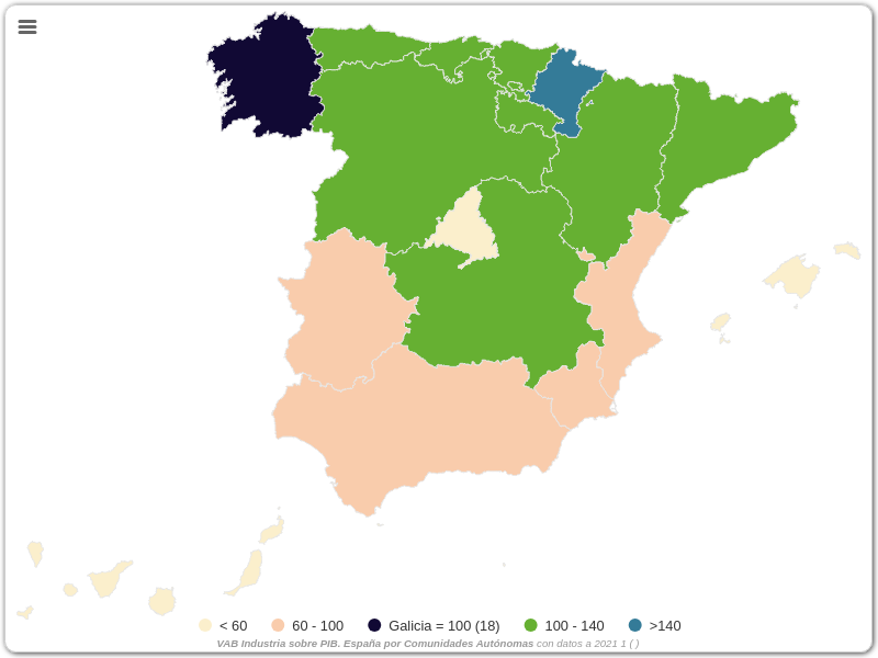 VAB Industria sobre PIB. España por Comunidades Autónomas