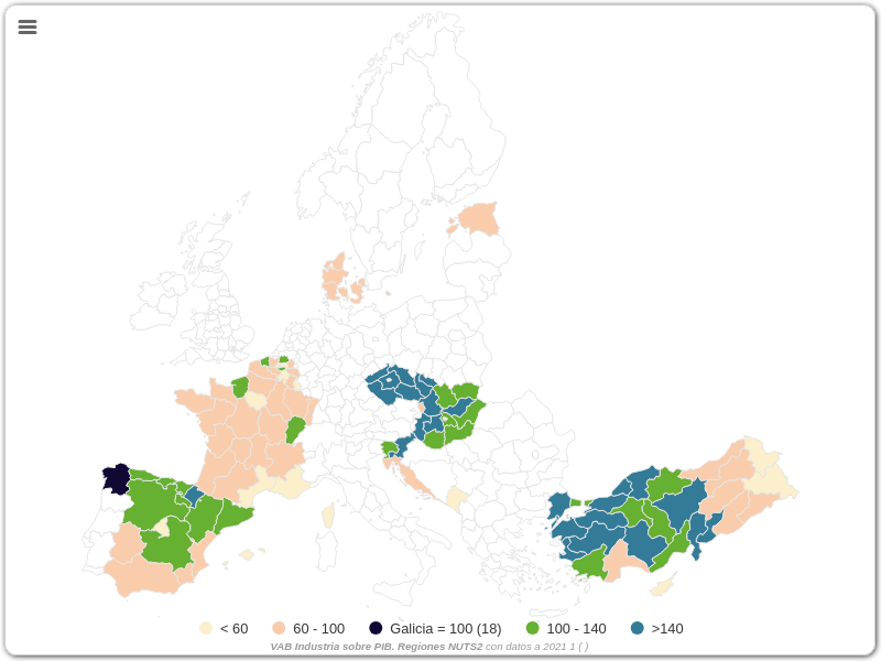 VAB Industria Manufacturera sobre VAB Total. Regiones NUTS2