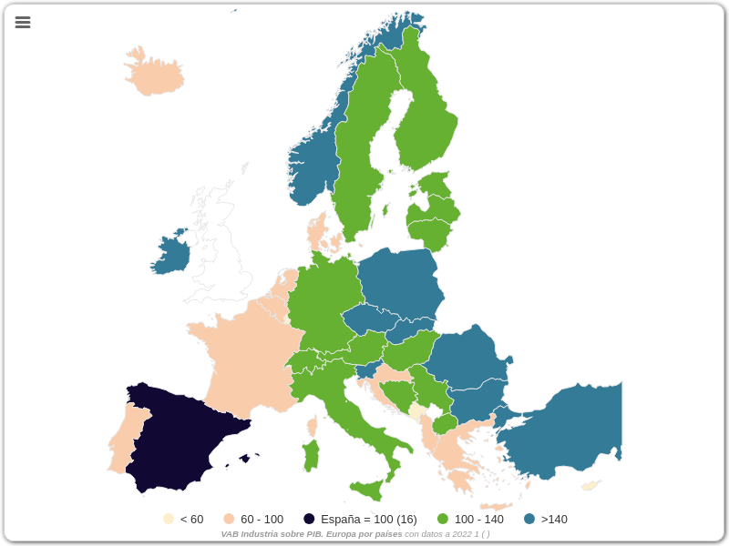 VAB Industria Manufacturera sobre VAB Total. Regiones NUTS3