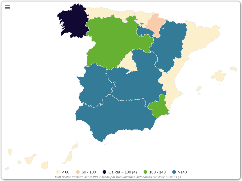 VAB Sector Primario sobre PIB. España por Comunidades Autónomas