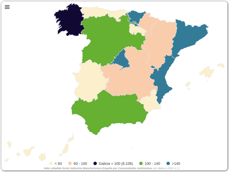 Valor añadido bruto Industria Manufacturera España por Comunidades Autónomas
