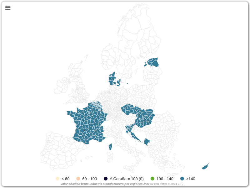 Valor añadido bruto Industria Manufacturera por regiones NUTS3