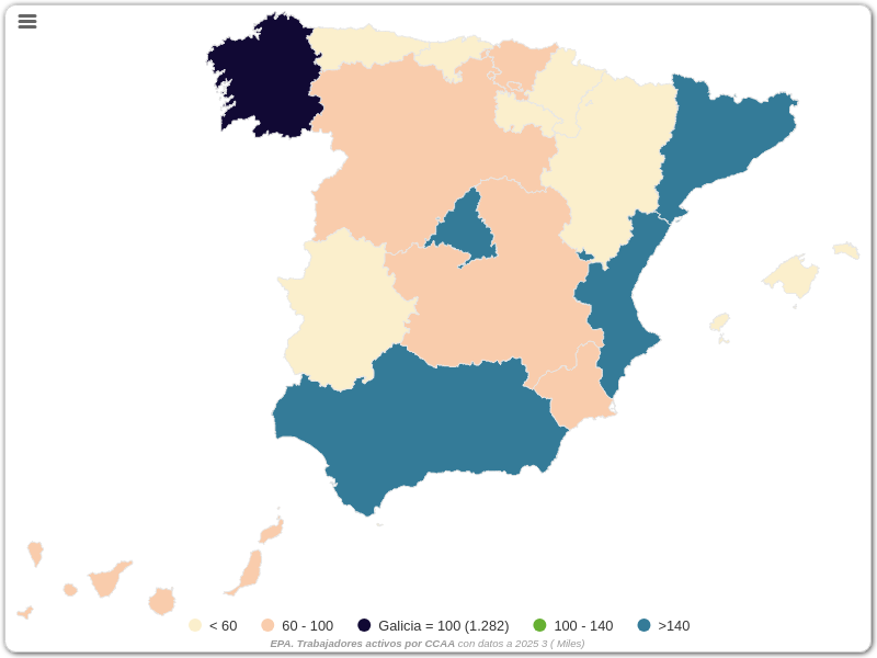 EPA. Trabajadores activos por CCAA